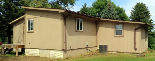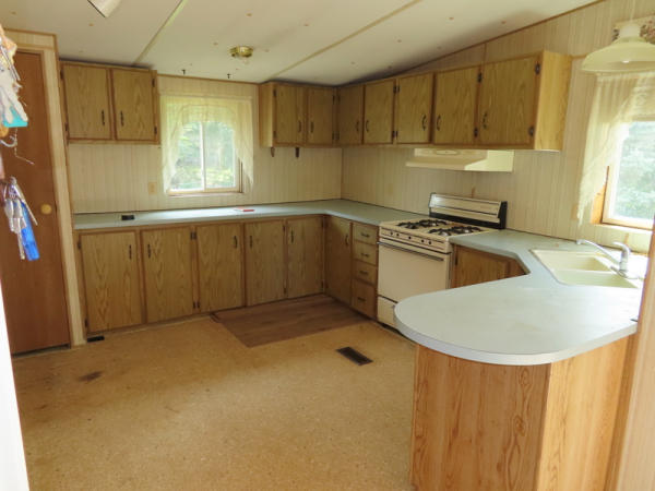 1,400 Sq. Ft.; 3-bedrooms; 2-Full Bathrooms; 7 new windows; 200-amp service; 2”x6” walls; gas water heater & water softener included; large living room; walk-thru kitchen with built-in cabinets; steal I-Beam floor; approx. 62’x28’; asphalt shingles; wood siding, deck and stairs included;