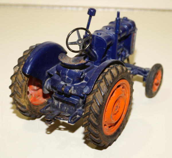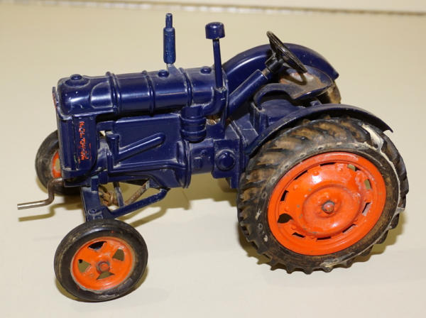 1/16th scale, heavy diecast with windup crank in the front, played with, paint is 90%, could use a detailed cleaning, no box
