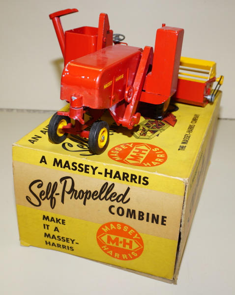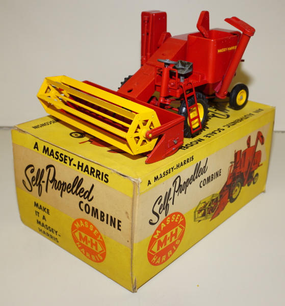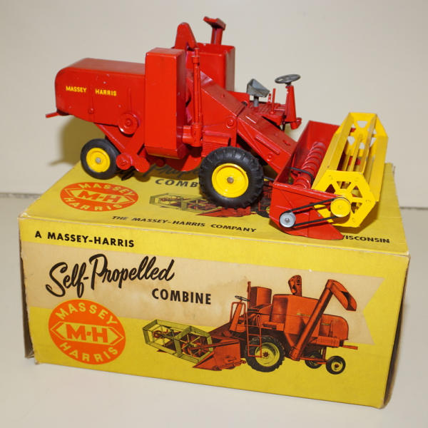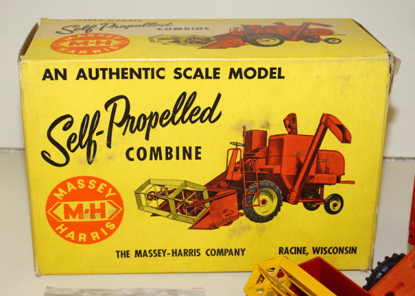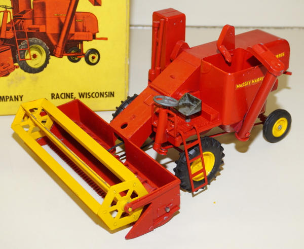 plastic rim combine, few light paint chips on the rear, but overall a very nice combine; Box has one inside flap torn off, but included, box has the liner; some aging to the box, but square, rates 8 condition overall; includes the original instruction booklet too