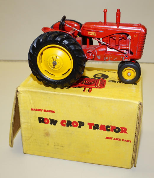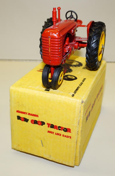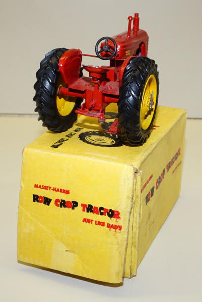 nice original tractor, 95% condition, metal front & rear rims, box is complete, bit of a water stain on the top, box rates 8.5 condition