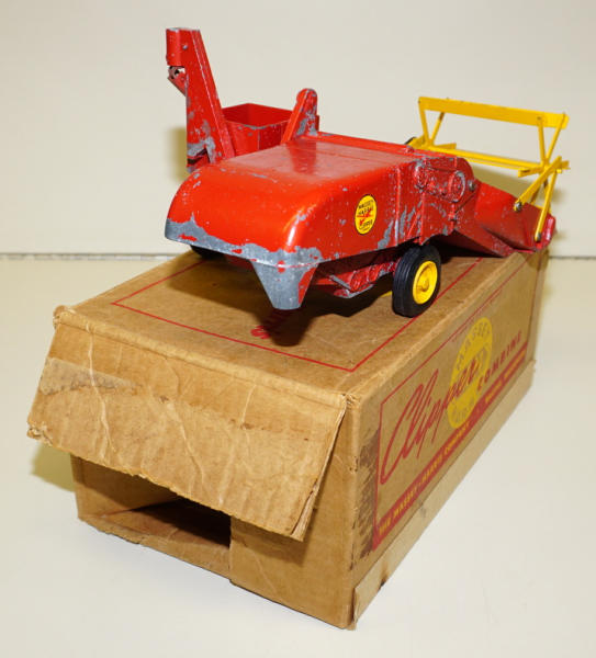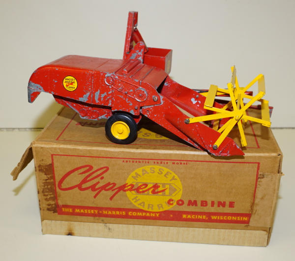 variation with peg hitch, full top bar and metal rims, this one has more play wear, 80% or so condition, box has a little more wear too, but complete, rates 8 condition