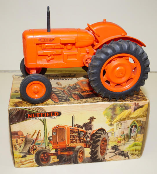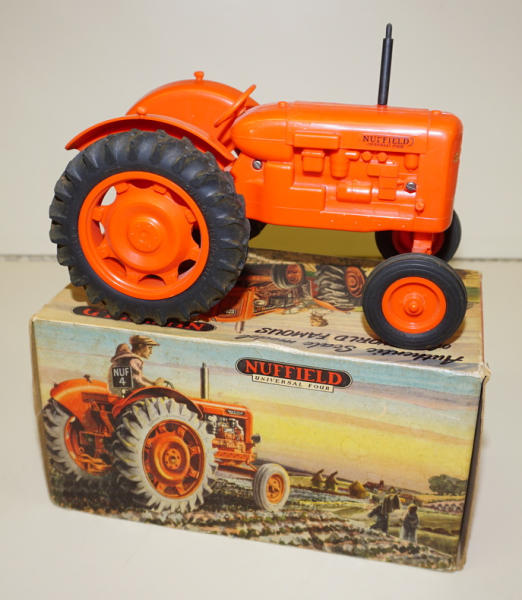 1/16th scale plastic tractor, nice detail, some minor wear, made in England by Lipkin; beautiful graphic box, some general wear, but overall nice, rates 8.5 condition
