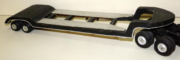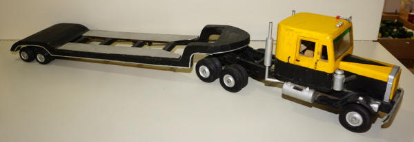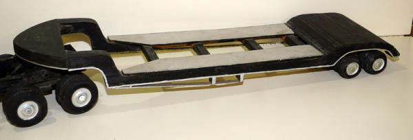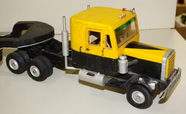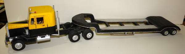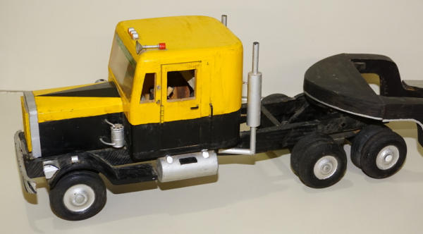 over 3' long when hitched, older homemade toy, a little crude, but still pretty cool looking, could use a detailed cleaning