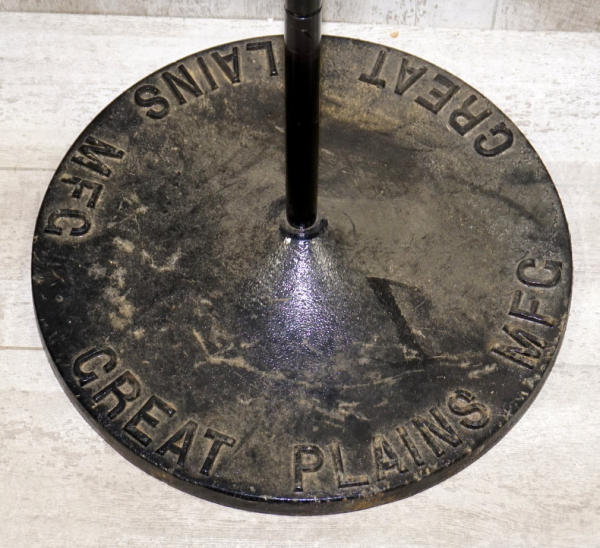 20" across, has a pole sticking up, heavy and nice lettering