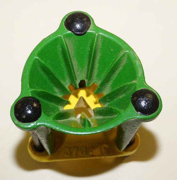 nicely repainted, was mounted to a corn sheller to clean the nubs on the end
