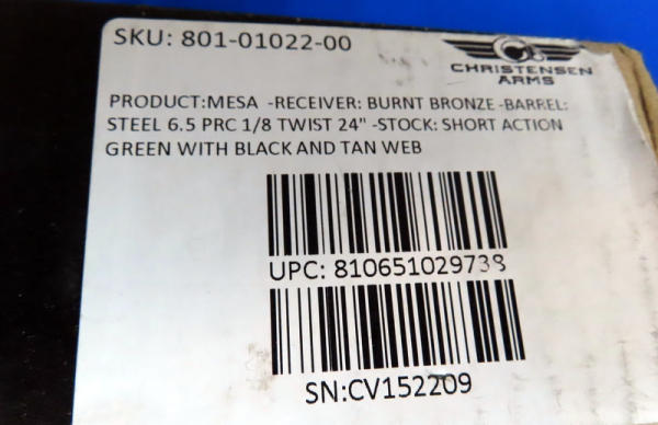 26" bronze barrel w/ported muzzle; Burnt Bronze finish w/green synthetic stock and Black/Tan webbing; 1-8 twist; smooth action; factory box; scope mount ready; USA; SN#CV152209; A41