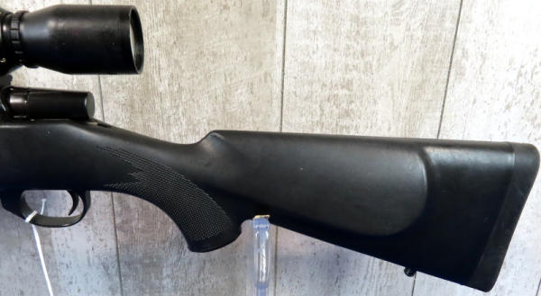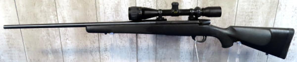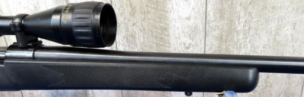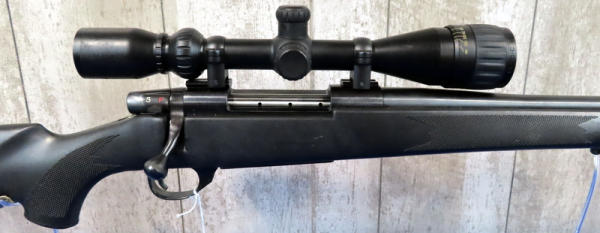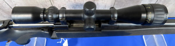 24" BBL; smooth action; BSA Contender 3-12x40 scope; scope has some sticky residue that needs cleaned off; factory box; has been used; black synthetic checkered stock; good deer gun; Japan; SN#VS122989; A9