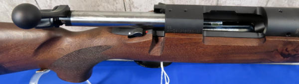 22" BBL w/no sights; smooth action; Mint & unfired; checkered walnut wood stock; factory box & Papers; nice & lightweight; scope mount ready; Spain; nice gun; SN#61-06-2080035-22; A1