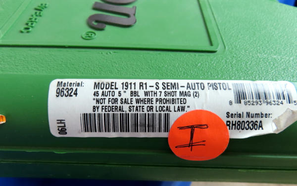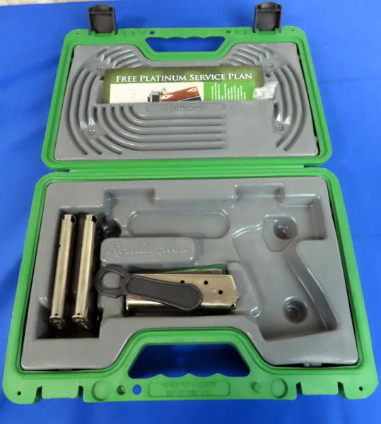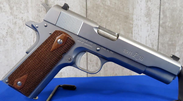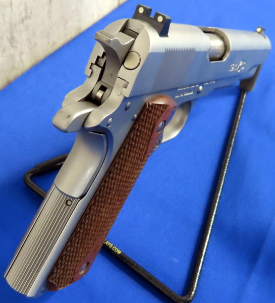 5" Stainless barrel; night sights; wood checkered grips; 4-magazines; factory hard case w/papers; like new; USA; SN#RH80336A; A60