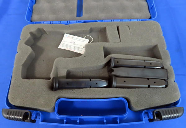 3.75" BBL; includes the .357 Conversion in stainless; stainless slide w/black synthetic grips; night sights; includes 5-magazines total; factory hard case; Germany; SN#AM48688; A45