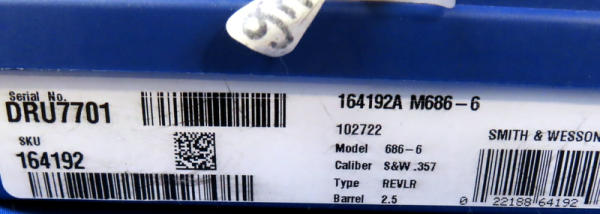 "GFE"; 2.5" Stainless Barrel; 7-shot swing out cylinder; used; red ramp front sight w/rear white outline; rubber grips; factory hard case; USA; SN#DRU7701; A30