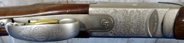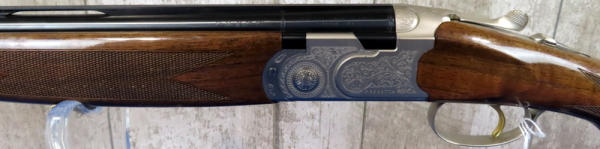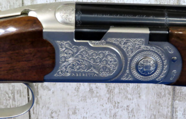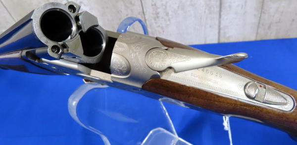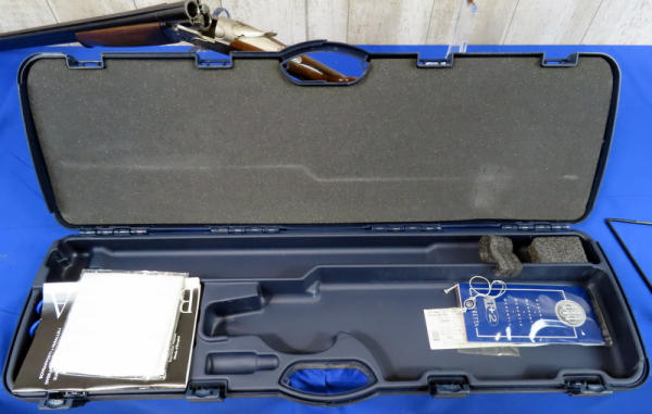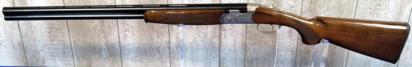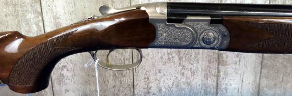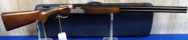 28" VR-BBLs; easy break action; high gloss checkered stock; stainless receiver w/factory engraving; gold trigger; factory hard case; super clean & like new; 3"; removable chokes; Italy; SN#R24663S; A9