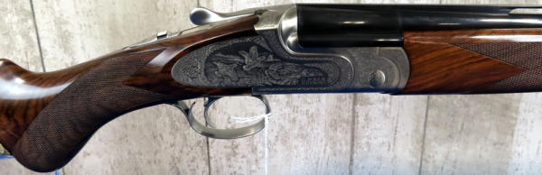 28" VR-BBLs; beautiful wood checkered stock; stainless receiver highly factory engraved; single trigger; factory hard case; 2.75"; removable chokes; like new & great look! Italy; SN#150901; A27