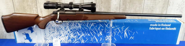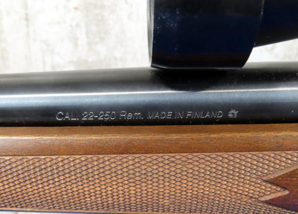 "GFE"; 26.5" Varmint BBL; smooth action; removable magazine; factory box; wood is near perfect w/great checkering; Burris 3x-9x Fullfield II scope; Finland; SN#250789; A30