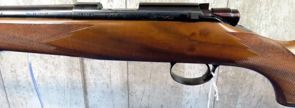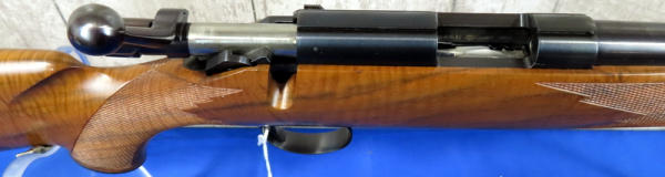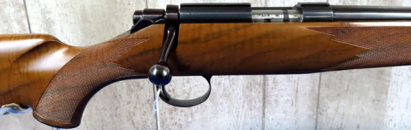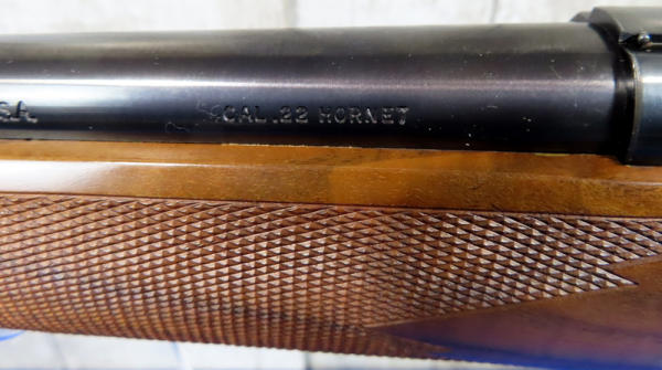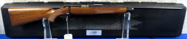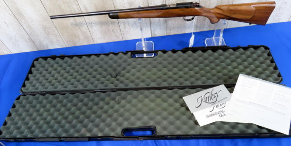 very hard gun and caliber to find!; 22" BBL; appears mint & unfired; nice wood w/checkering; factory hard case; removable magazine; USA; SN#820626; A45
