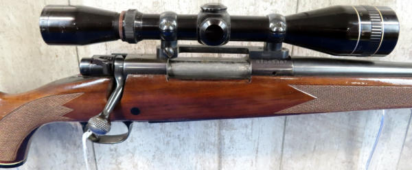"GFE"; 22" BBL; action needs a little oil; nice wood w/a few minor field marks; Leupold 3x9 scope; minor bluing wear towards muzzle; USA; SN#G1063367; A30