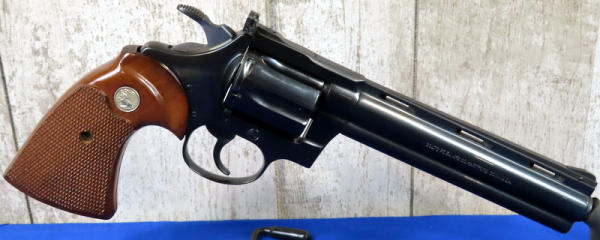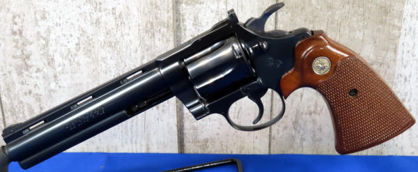 6" VR-BBL; 6-shot swing out cylinder; factory wood checkered grips; has been fired but overall amazing condition; has soft zippered case; TG; USA; SN#P55015; A47