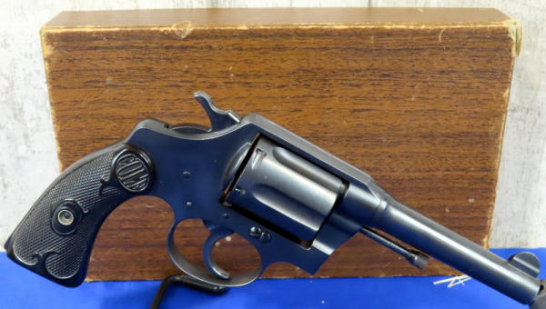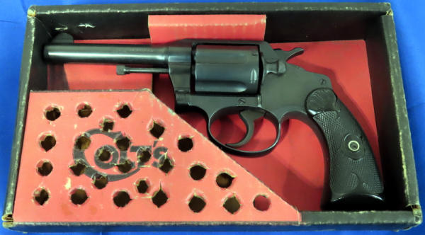 4" BBL; plastic checkered factory grips; 6-shot swing out cylinder; may have been reblued several years ago, looks nice; factory box; USA; SN#209496; A60