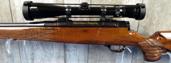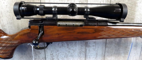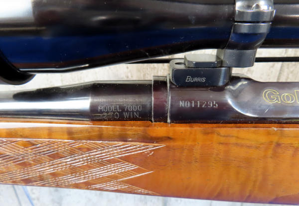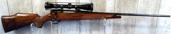 "GFE"; 26" BBL; smooth action; high gloss wood w/great checkering; Redfield 3x-9x scope; great bluing; high quality firearm we've never had before; gold trigger; Japan; SN#N011295; A30
