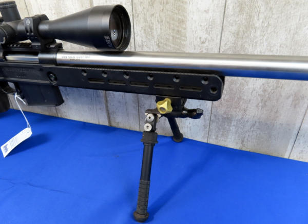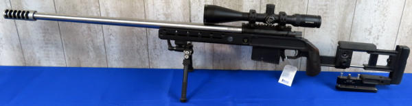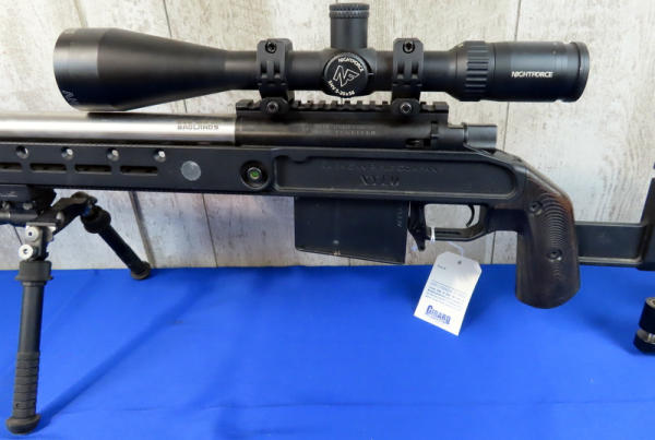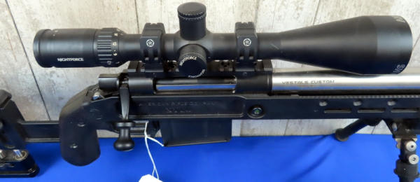"GFE"; WOW, heavy 30" stainless Vestals Custom Barrel; Xylo stock w/pistol grip and adjustable bench rest stock; 4" T5 Terminator flash hider; Nightforce SHV 5-20x56 high end scope; bi-pod; removable magazine; these Am. Rifle Co. firearms are based on a Rem. Mdl.700 action; heavy firearm! USA; SN#M7-TLR-D-00036; A30