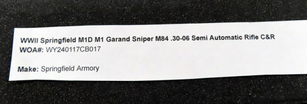 Has original scope mount; leather sling; Telescope M84 scope is clear; wood is very nice; has flash hider on muzzle; 24" BBL is not dated; everything properly marked Springfield; comes with a Pelican hard padded case; wonderful set-up and a great collector firearm! SN#3772532; A3