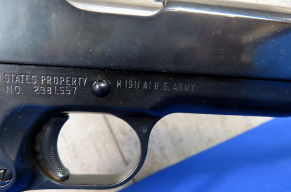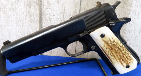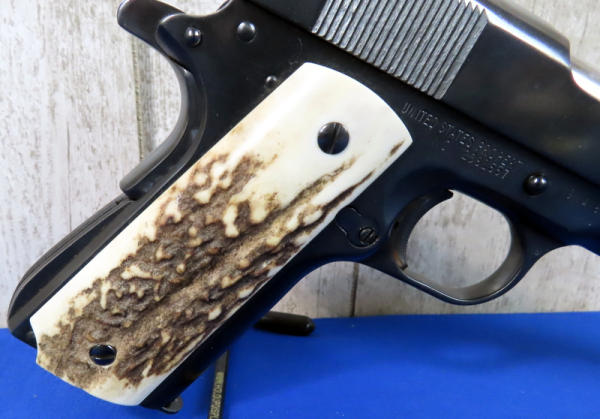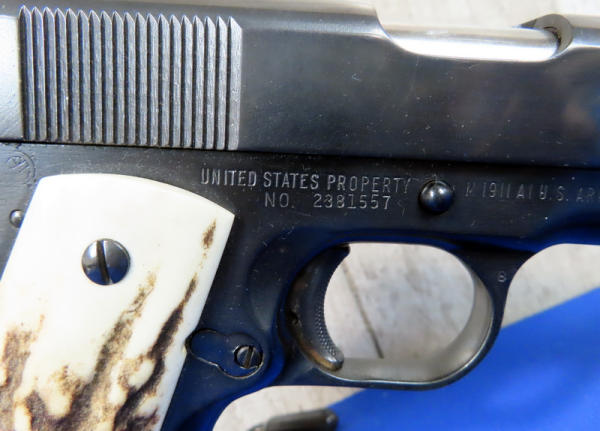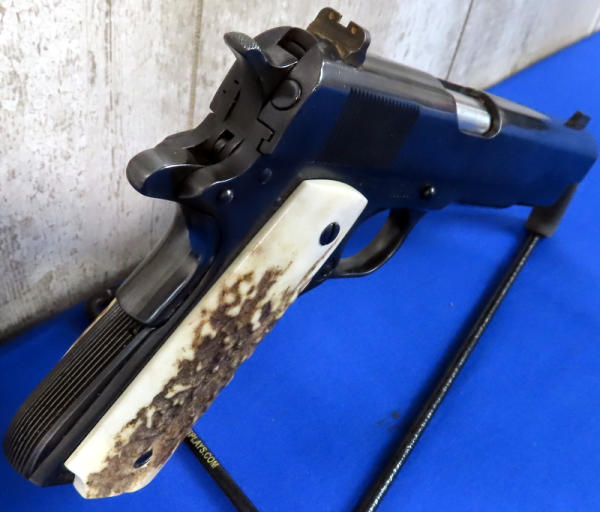 5" stainless barrel; stag grips; rear night sights; marked "United States Property"; one magazine; nice heavy 1911; good bluing; made in USA; SN#2381557; A5