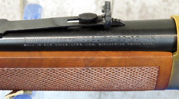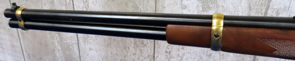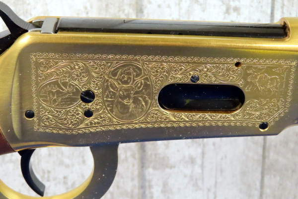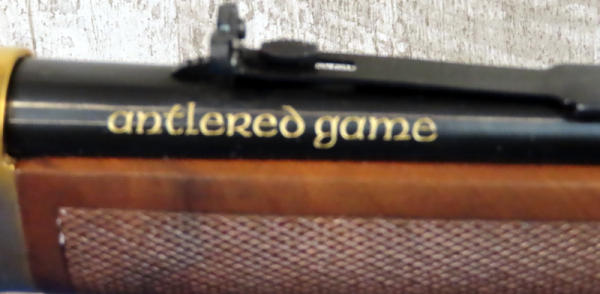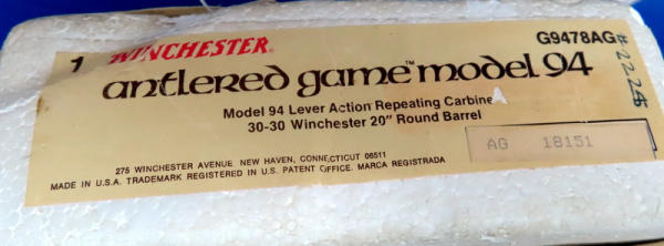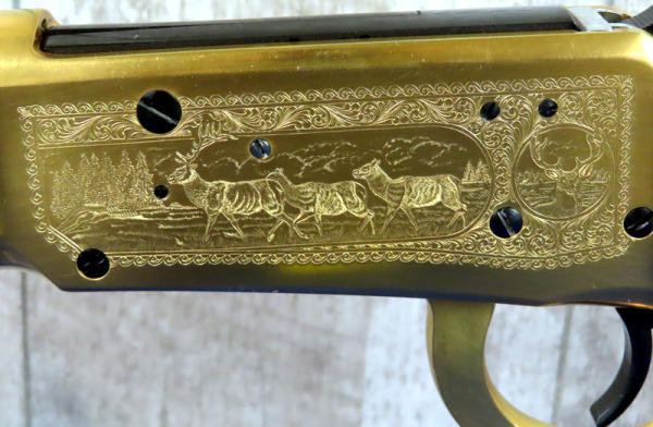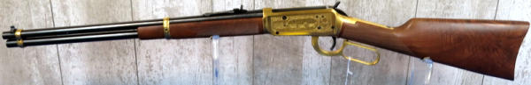 20" BBL; Mint & Unfired; original box w/sleeve; sleeve has slight wear from storage but overall very nice; highly engraved bronze finish receiver w/bronze barrel bands, lever and emblem in checkered walnut stock; USA: SN#AG18151; A53