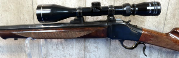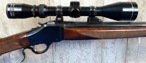 28" Oct. Bbl.; smooth action; nice checkered high gloss stock; used but overall very nice; minor marks from use; Tasco 2.5-10x44 scope; Japan; SN#03874NW247; A15
