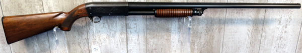 28" Solid-Rib Bbl.; smooth action; wood does have crack on both side of stock behind receiver; factory engraved receiver; 2.75" FC; bottom eject; some bluing loss; USA; SN#303083; A49
