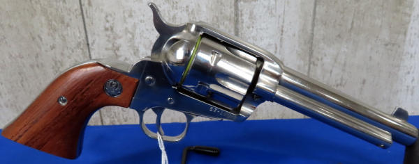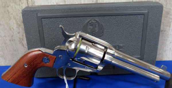 "GFE"; 5.5" Stainless barrel; used; factory wood grips; factory hard case; 6-shot fixed cylinder; USA; SN#57-18022; A30