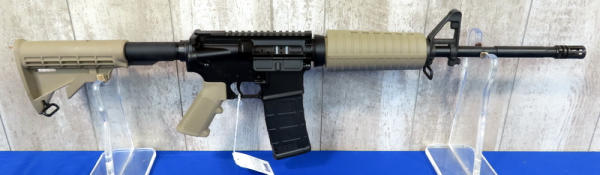 16" BBL w/2" flash hider; desert sand synthetic furniture; extendable stock; pistol grip; one magazine; 1-7 twist; appears unfired & mint; USA: SN#SCB727934; A44