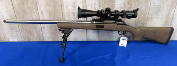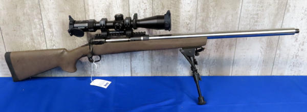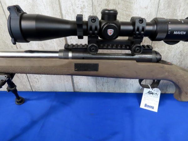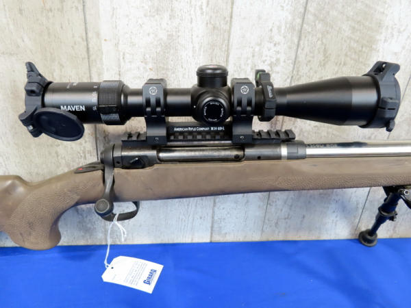 "GFE"; 22" Stainless Threaded barrel; bolt needs some oil; Hogue rubberized brown stock; bi-pod; Maven RS.1 2.5-15x44 scope; box; USA; SN#G868258; A30