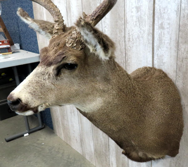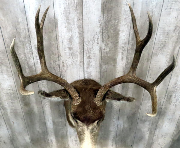 "GFE"; very nice rack! Older mount but looks great; largest spread is 17.5"; approx. 40" from bottom of neck to tip of antlers and sticks out about 27" from wall; prefer local pickup