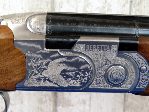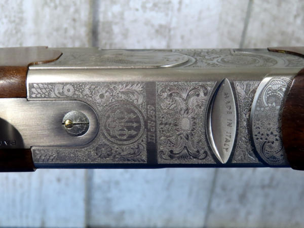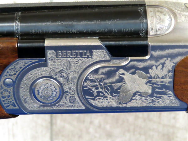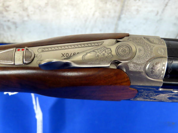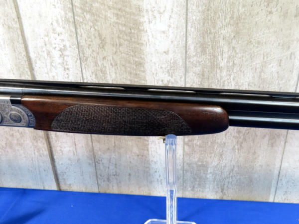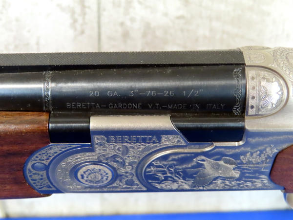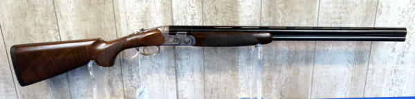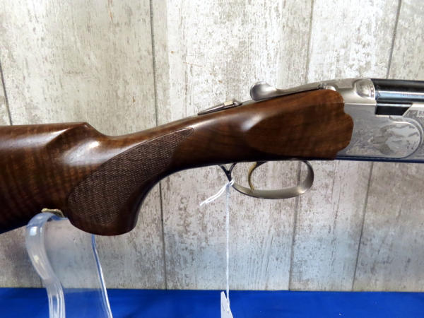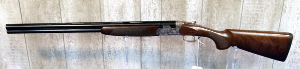 mint & unfired; 26.5" VR-BBL; break action is stiff from never being used; single gold trigger; beautiful checkered wood stock; highly engraved stainless receiver; 3"; screw-chokes; factory hard case; Italy; SN#F89970X; A80