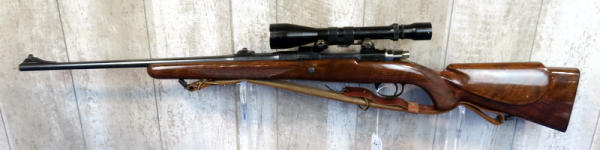 22.5" BBL; smooth action; leather sling; B&L Balvar 8 scope; wood has field marks; Belgium; SN#6L37552; A8