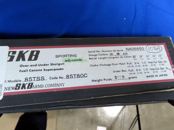 30" VR-BBL; adjustable cheek rest; super clean; stainless engraved receiver; hy-vis front sight; removable chokes; single trigger; easy break action; nice wood; factory box; Japan; SN#NA06650; A55