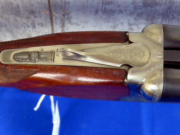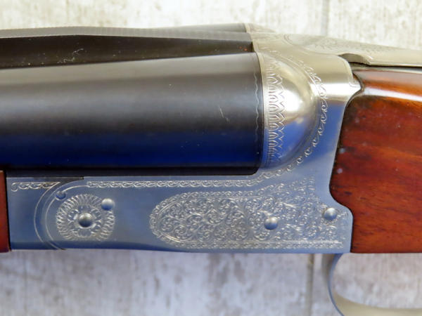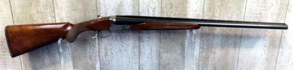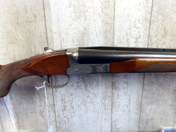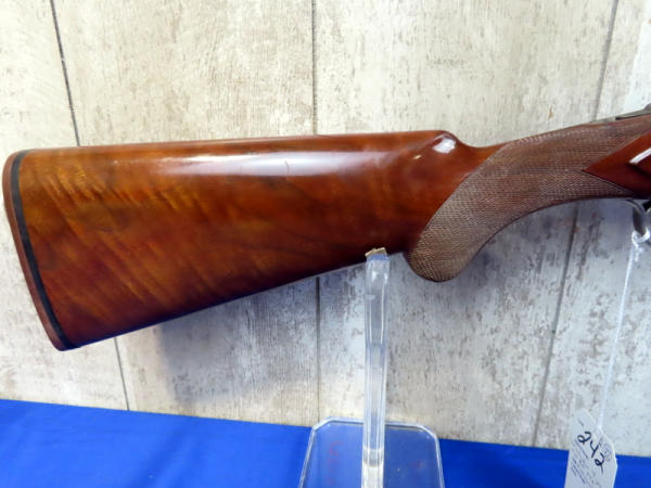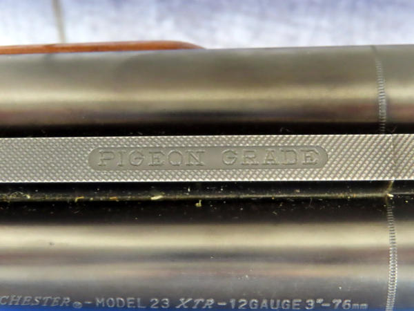 "GFE"; 26" VR-BBLs; stainless receiver w/factory scroll engraving; has pigeon engraved on bottom for receiver; single trigger; easy break action; wood is very nice w/a few minor marks from use and storage; 3"; Left-MC & Right-IC; Japan; SN#PWK004937; A30