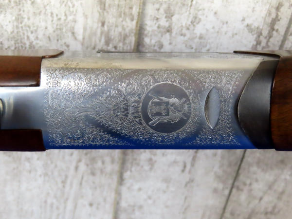 28" VR-BBLs; easy break action; highly engraved stainless receiver; single gold trigger; nice wood checkered stock; 3"; screw in chokes; Italy; SN#B07633; A11