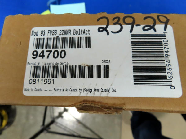 "GFE"; 21" Bull Stainless Barrel; black synthetic stock; removable magazine; scope blocks; like new; factory box; USA; SN#0811991; A30