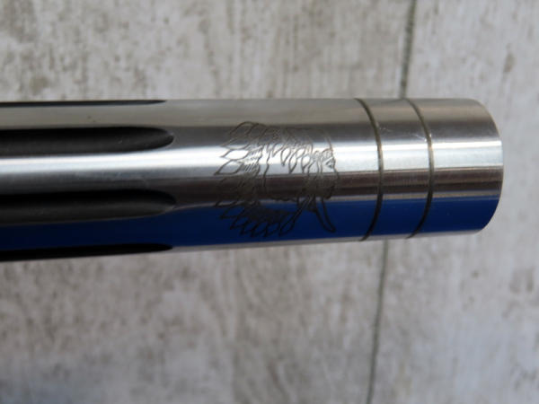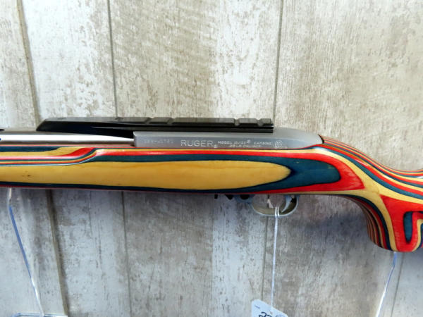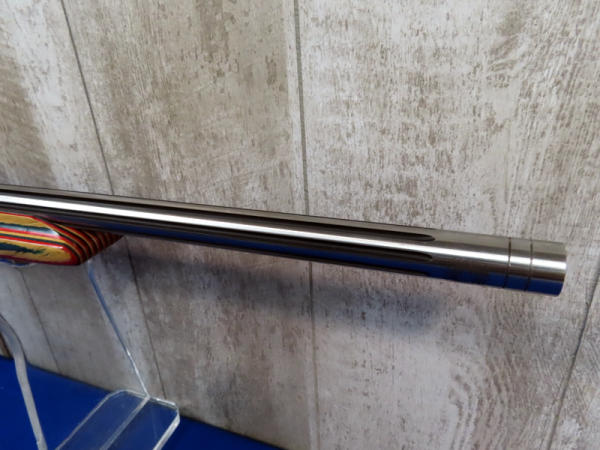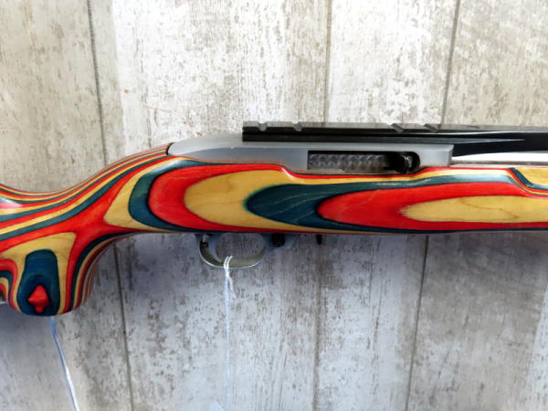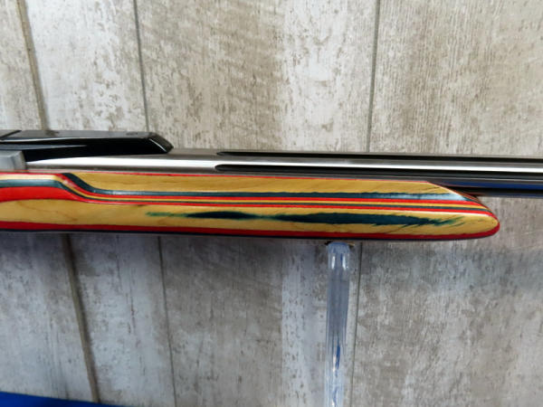 21.5" Stainless Fluted Heavy Barrel, has Warrior head graphic, not sure what brand that is; Red, Blue & Wood color stock; stainless receiver; picatinny rail; removable magazine; very nice and cool looking gun!; USA; SN#238-41751; A60