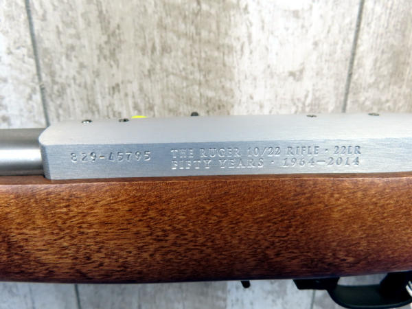 18.5" Stainless Barrel; wood stock; like new & mint; removable magazine; marked Fifty Years on receiver; USA: SN#829-45795; A71