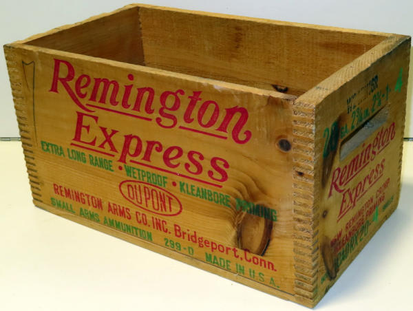 dovetail corners; extremely nice lettering and color; has a crack in the bottom; 14.5"x8"x8";