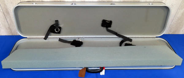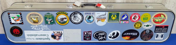 used, nice condition; has a lot of stickers all over it; 50" long