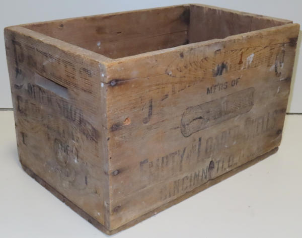 very neat w/the shell graphic; one side is quite a bit nicer than the other; good bottom; 15.5"x9.5"x10"