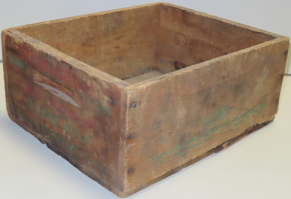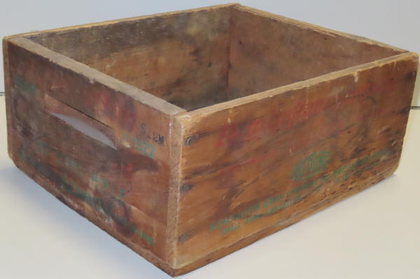 has some water damage and lettering is faint; decent bottom; 14"x12"x6"