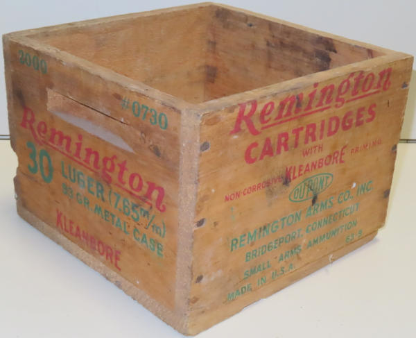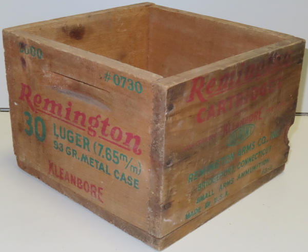 very nice lettering and overall great condition; good bottom; never seen a crate for .30 Luger!; 9.5"x10"x7";