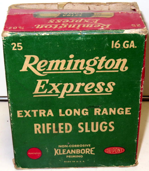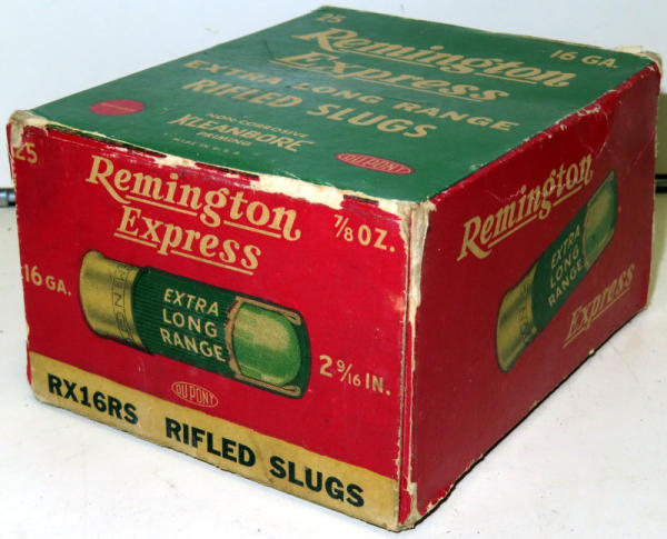 larger than a regular shell box; believe would have most likely held 5 of the 5-packs of rifles slugs; has some minor wear; Empty