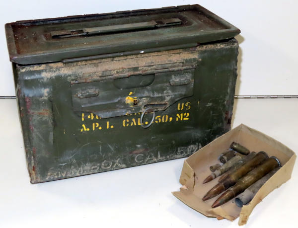 Can is very dirty, includes 2-rounds of .50cal and other misc.; sell for one money