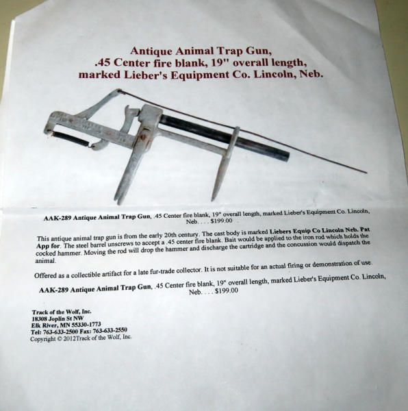 made in Lincoln, NE; uses .45cal Fire Blank; 19" long; includes some paperwork on the history; no transfer needed; cool piece!