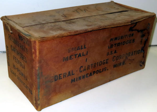 top has been cut open; has some wear; all cardboard; 14.5"x6"x6.5"; box only, no ammo
